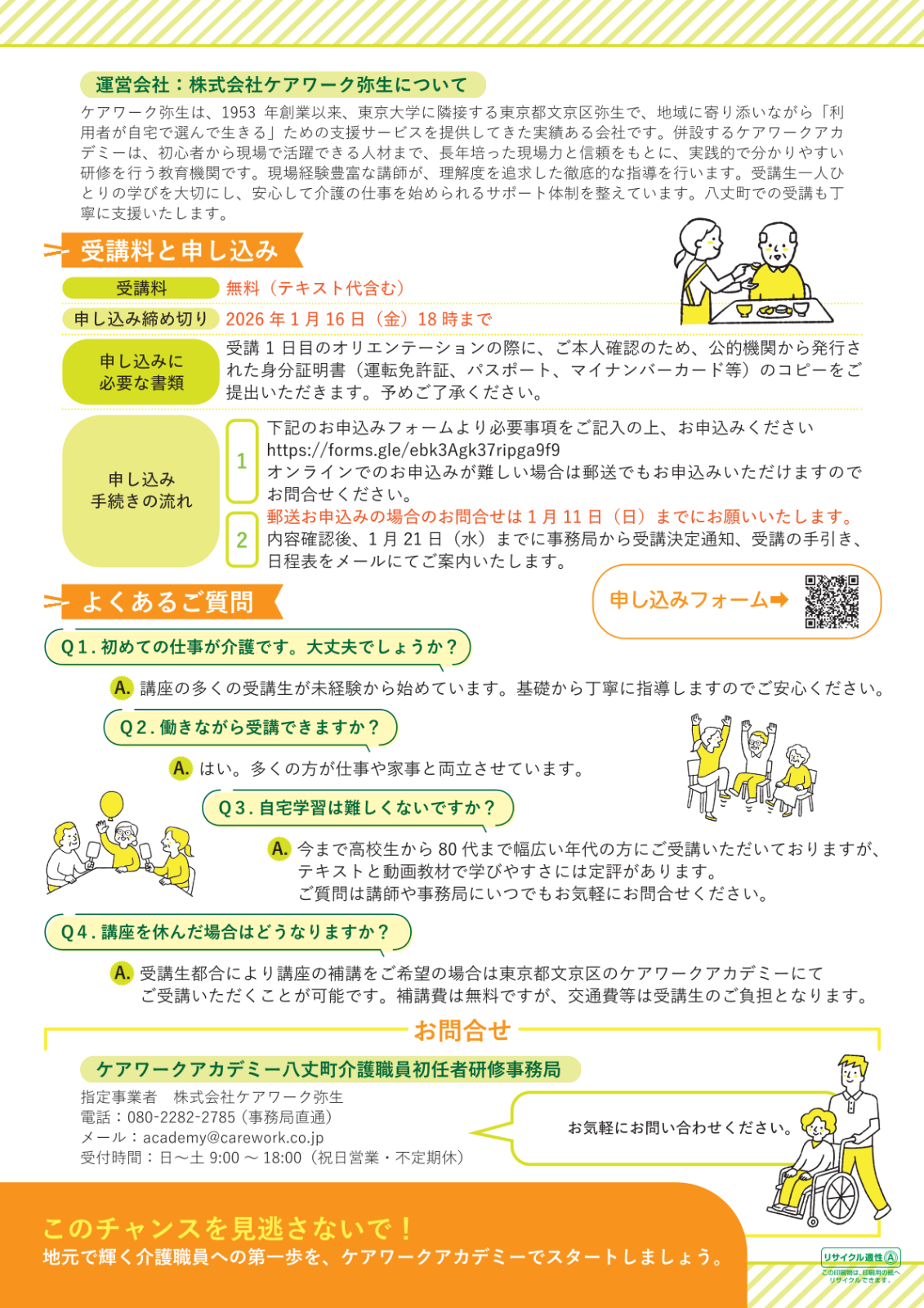 【受講生募集】2025年度八丈島介護職員初任者研修 開催のお知らせ